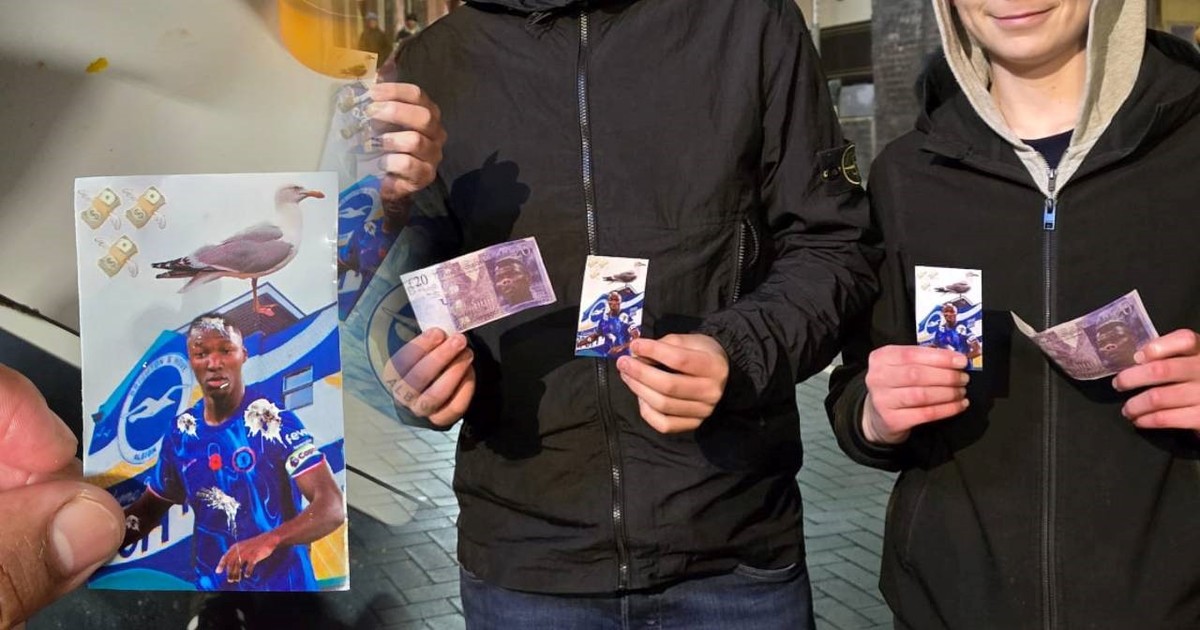 Las imágenes fueron compartidas por el periodista Ronald Collante y en las mismas se aprecia una pancarta en la que aparece Caicedo, con la camiseta del Chelsea, rodeado de billetes y con excremento de gaviota, el emblema del Brighton.