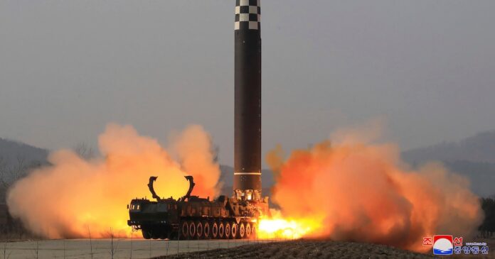 El misil balístico intercontinental Hwasong-17 (Agencia Central de Noticias de Corea/Servicio de Noticias de Corea via AP, Archivo)