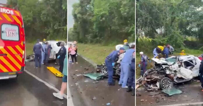 El choque ocurrió en la tarde del jueves, cuando la Chevrolet S10, que realizaba el trayecto de regreso de Balneário Camboriú a Misiones, impactó de frente contra un camión que circulaba en dirección a Joaçaba. El conductor del camión, un hombre de 69 años, sobrevivió con lesiones leves y fue trasladado a un hospital para control médico.