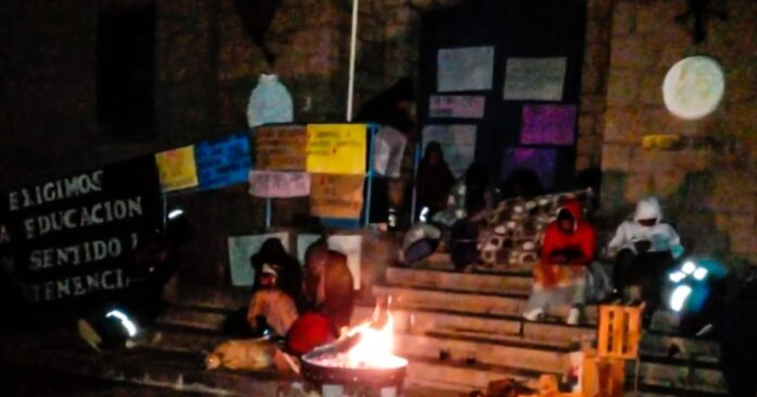 Ahora, son las familias de los escolares de la Escuela Hogar N° 4661 Carlos Guido Spano quienes decidieron tomar la institución ante la falta de respuestas. La medida comenzó el jueves y continuó. Como parte de la protesta, padres y madres impiden el ingreso de la directora, las maestras y el personal no docente. Durante la gélida noche andina, con temporal de lluvia, permanecieron en la puerta del establecimiento.