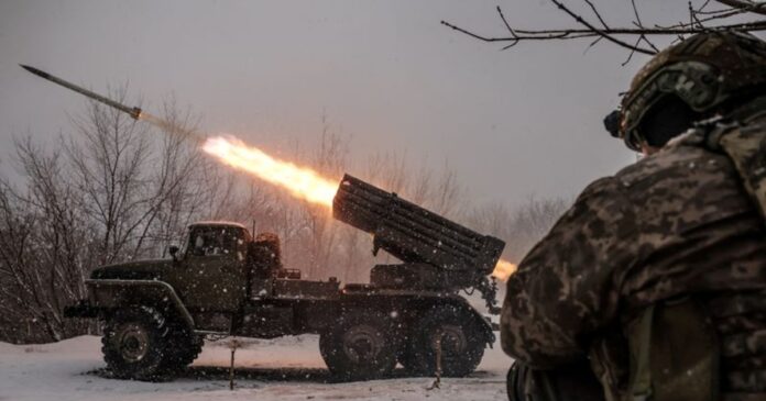 FOTO DE ARCHIVO: Militares de la 24ª Brigada Mecanizada, de las Fuerzas Armadas de Ucrania, disparan un sistema de lanzamiento múltiple de cohetes BM-21 Grad hacia las tropas rusas (Oleg Petrasiuk/via REUTERS)