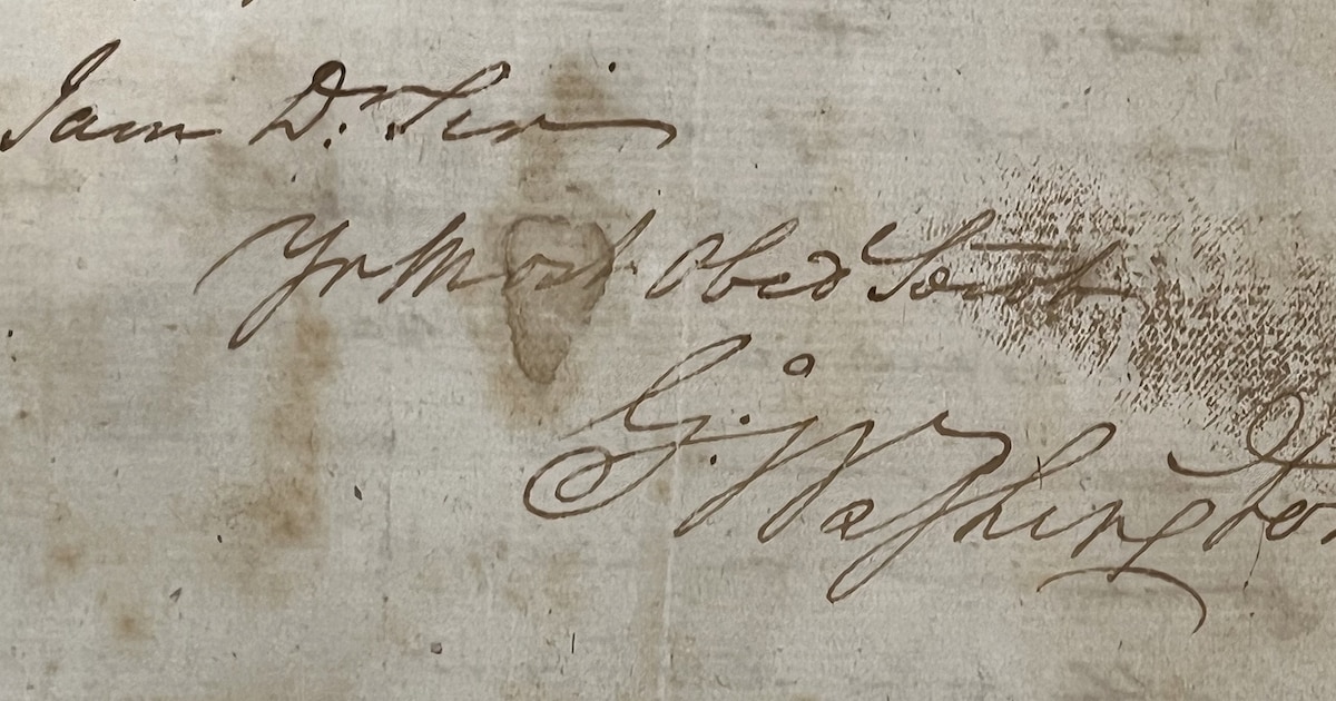 La carta, con más de 240 años de antigüedad, está escrita en ambas caras de una sola hoja de papel de aproximadamente 20 por 30 centímetros. Está manchada y descolorida en muchos lugares y tiene lo que parece ser una huella dactilar sucia cerca de la elaborada firma de Washington. El miércoles, una empresa de Ardmore, Pensilvania, que compra y vende documentos históricos, anunció que había adquirido la rara carta y que la pondría a la venta el Día de los Presidentes. Precio: 150.000 dólares.