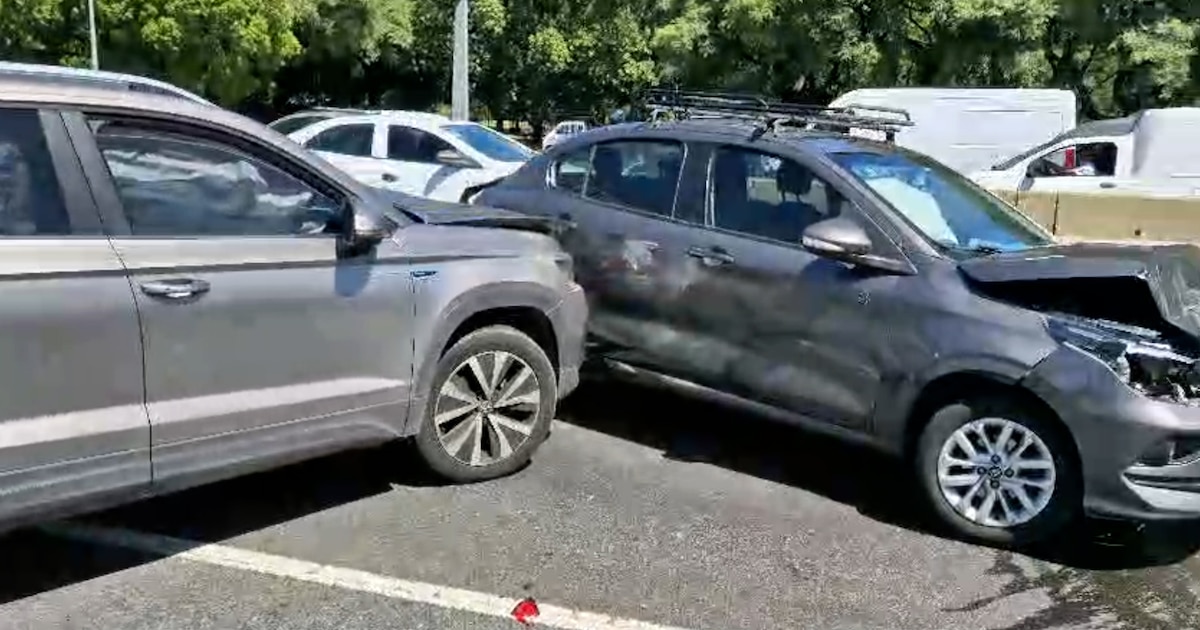 Por causas que se encuentran bajo investigación, nueve autos -4 en el carril central y 5 en el derecho- chocaron justo antes de la estación de servicio Shell ubicada en el kilómetro 4 de la avenida General Paz, a pocos metros de la bajada de la avenida Doctor Ricardo Balbín.