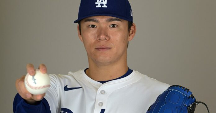 Yoshinobu Yamamoto, pitcher de los Dodgers. (AP Photo/Ashley Landis)