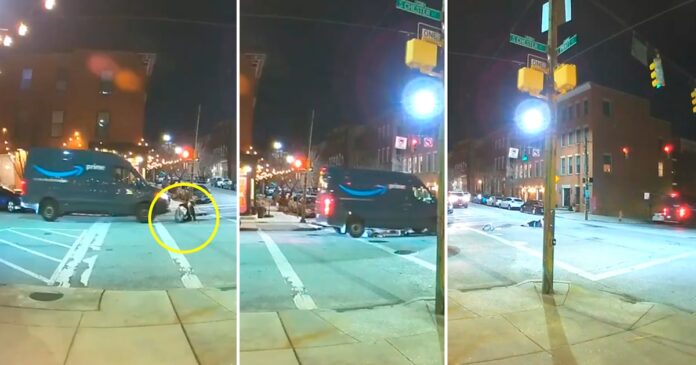 Un video de seguridad capturó un impactante incidente en el que una mujer de 29 años fue atropellada por una camioneta de reparto de Amazon en el vecindario de Butchers Hill, en Baltimore, Maryland. Según informó CBS News, el hecho ocurrió el pasado martes alrededor de las 21:30 horas en la intersección de las calles E. Pratt y S. Chester. La víctima, que cruzaba la calle en un paso peatonal, fue arrollada por el vehículo, cuyo conductor posteriormente abandonó la escena.