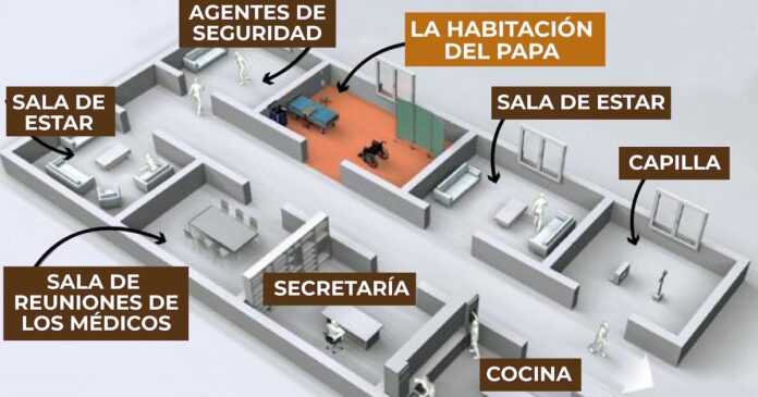 En la última planta del Hospital Universitario Agostino Gemelli de Roma, una zona reservada y protegida alberga al papa Francisco durante su actual hospitalización por una neumonía biltateral. Este espacio, conocido como “Vaticano 3”, es un lugar que combina discreción, intimidad y seguridad, diseñado específicamente para atender las necesidades médicas y personales del pontífice.