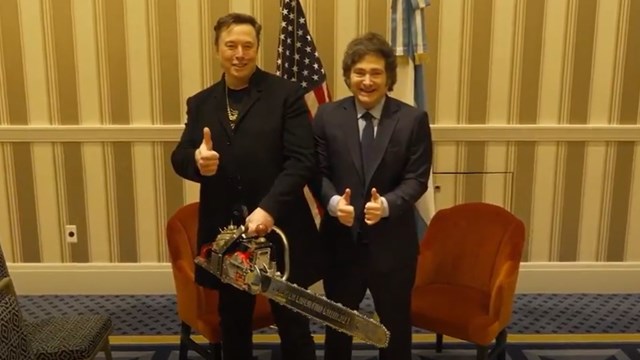 Javier Milei se reunió con Elon Musk y le regaló una motosierra