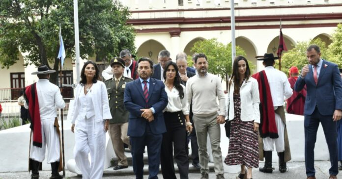 El gobernador de Salta, Gustavo Sáenz, se refirió a distintos temas en una rueda de prensa, que se concretó luego de los actos por el 212º Aniversario de la Batalla de Salta, que se inició con el izamiento de la bandera en la plaza Belgrano.