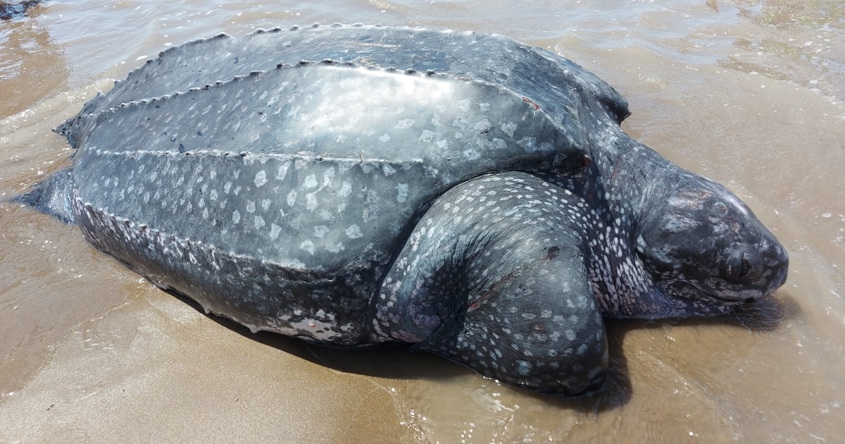 Último ejemplar de tortuga laúd aparecido muerto en Nueva Atlantis, Partido de la Costa (Fundación Mundo Marino)