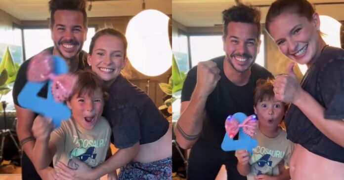 ¿El detalle? Parece que se viene una nena, a juzgar por un número cuatro que sostiene su hijo, al que le agregaron un moño rosa.
