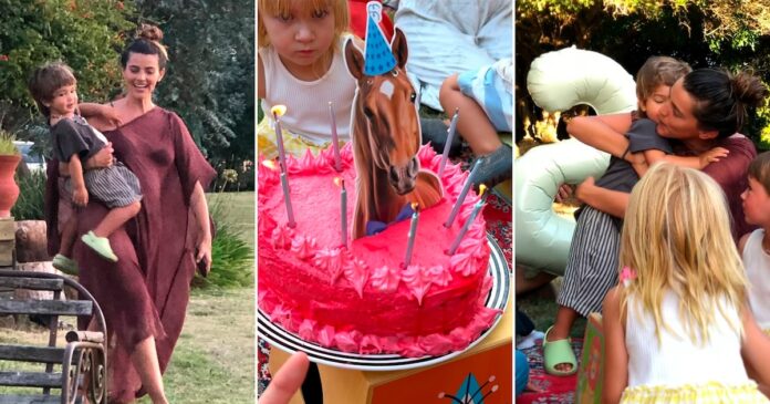 A contramano de la tendencia, en la que los niños suelen elegir una temática de algún personaje animado popular para la decoración del festejo, la influencer hizo una ambientación sencilla con temática naturista. Por un lado, mostró la torta hecha por ella misma, que tenía forma de corazón y una cobertura rosa con una foto de un caballo. La celebración se dio al aire libre, en un campo, en el que estaban sus allegados sentados en puffs o en una alfombra en el piso. Como única decoración artificial, se destacaba un gran globo con forma del número dos. “Amor de mi vida”, le dedicó a su hijo.