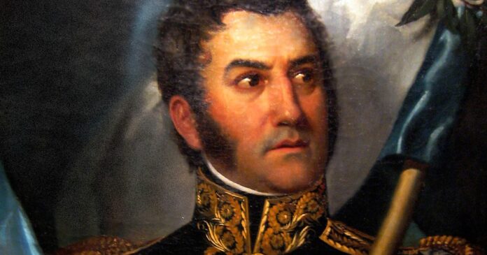 José de San Martín con la bandera argentina.