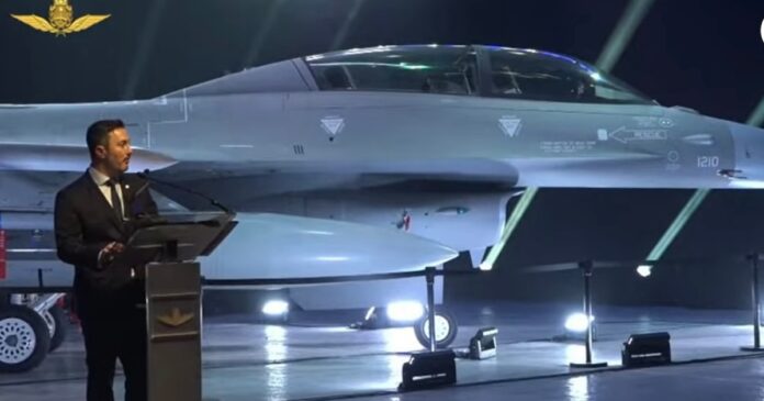 Luego de varios meses de trabajo y espera, el ministro de Defensa, Luis Petri, presentó este lunes por la noche el primer avión F-16 Fighting Falcon adquirido a Dinamarca, completamente ensamblado y con el armamento de entrenamiento equipado.