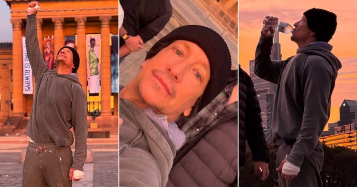 Nicolás Vázquez viajó a Filadelfia y representó la escena más icónica de Rocky (Foto: Instagram)