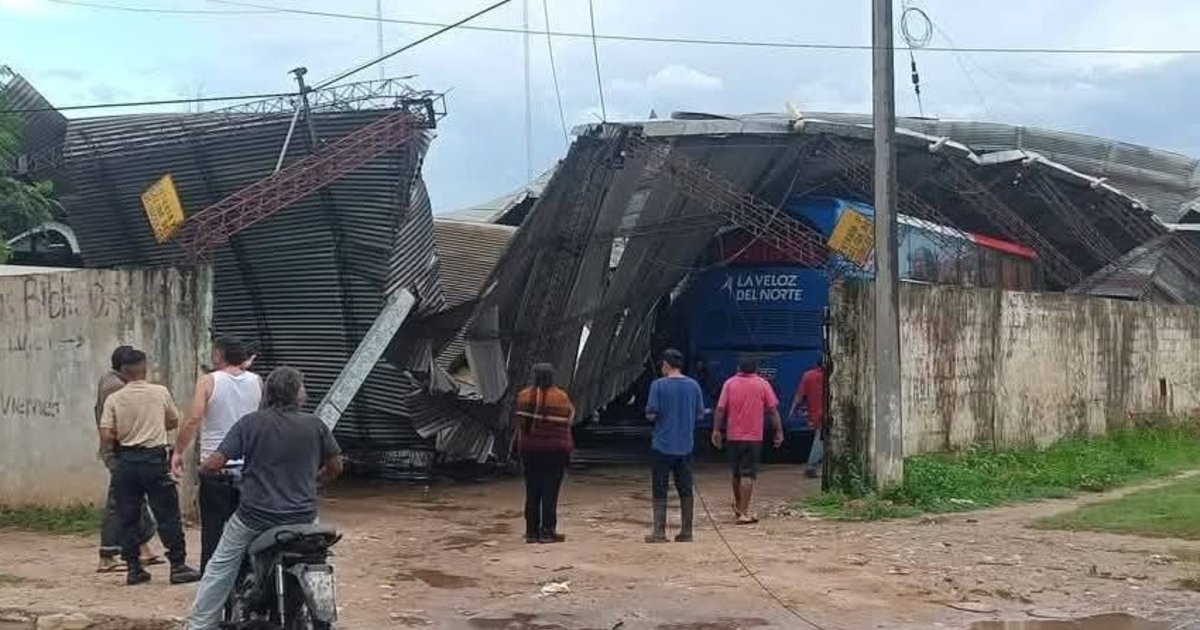 Entre algunos de los edificios dañados se encuentra uno de los galpones de la Veloz del Norte, donde el techo quedó destruido.