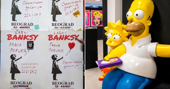 “Sus obras no están destinadas al consumo masivo… no es capitalista ni comercial”, declaró a la AFP una residente de Belgrado que se presentó como Vanja tras salir de la exposición El falso Banksy.