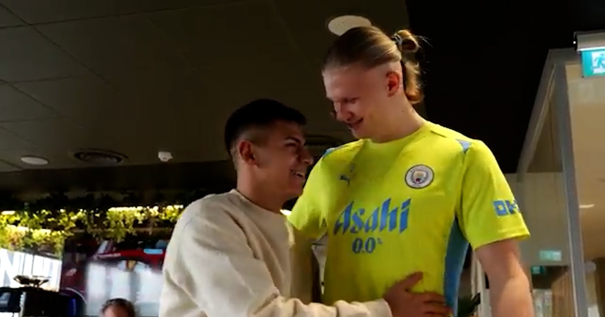 Otro de los momentos destacados de la llegada del ex jugador de River Plate al City tuvo que ver con el momento de la presentación ante algunos de sus compañeros del plantel. Cuando fue el turno de saludar a la figura del equipo, Erling Haaland, se produjo una breve conversación con el noruego.
