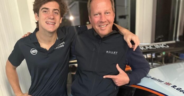 Franco Colapinto junto con sus managers, Jamie Campbell-Walter y María Caterineu, y su padre. (IG)