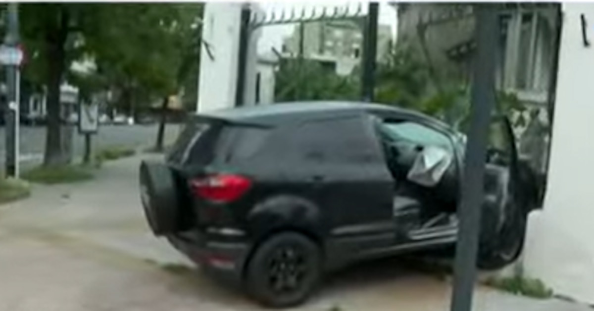 A causa del impacto, el coche se incrustó contras la pared que sostiene el enrejado perimetral. Según contaron vecinos de la zona al canal TN, los dos ocupantes del Ford se bajaron tras el siniestro vial y escaparon caminando del lugar.