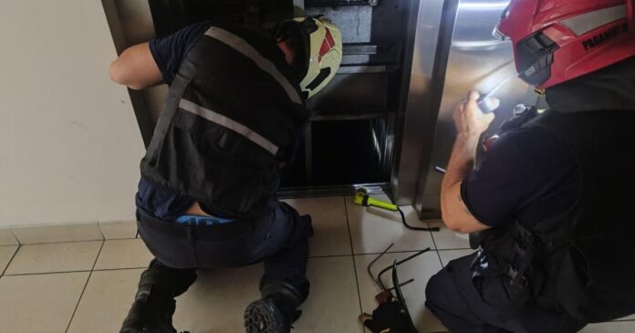 Bomberos trabajando en uno de los ascensores varados por el corte de luz