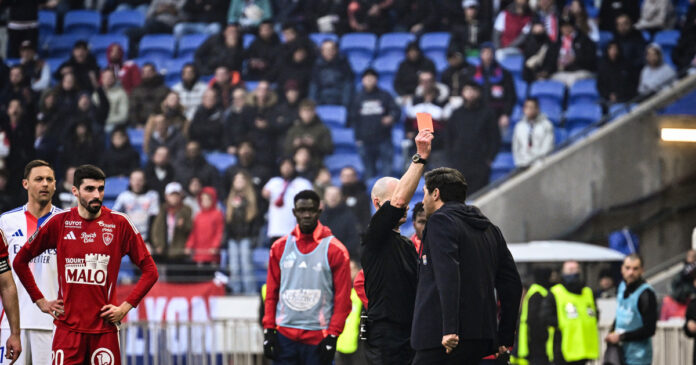 Olympique Lyon – La locura del técnico del Lyon con el referí Paulo Fonseca encaró a Benoît Millot, que lo expulsó por meterse en la cancha, en el partido frente al Brest, por la Ligue 1.