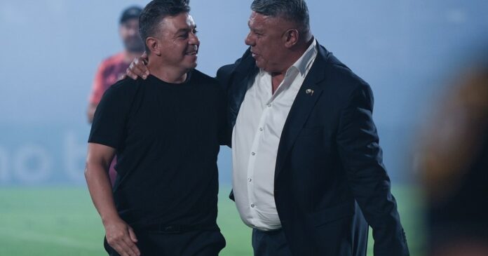 Gallardo con el Chiqui Tapia luego de la derrota de River en la Supercopa Internacional.