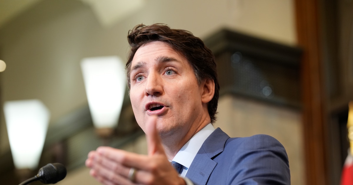 El primer ministro canadiense Justin Trudeau sostiene una conferencia de prensa sobre los aranceles impuestos por Estados Unidos, en Ottawa, el martes 4 de marzo de 2025 (Adrian Wyld /The Canadian Press vía AP)