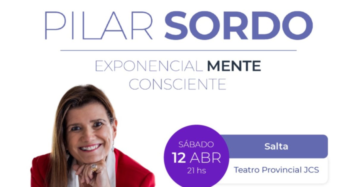 La reconocida psicóloga y escritora Pilar Sordo presentará su nueva conferencia “Exponencialmente Consciente” el próximo 12 de abril de 2025 a las 21:00 horas en el Teatro Provincial Juan Carlos Saravia. Las entradas para este imperdible evento ya están disponibles en Alvarado 777, tenés 2×1 con Club El Tribuno.