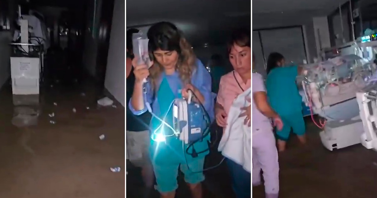 Según el registro de los videos, a los que accedió Infobae, se observa cómo el agua alcanzó varios centímetros de altura en varios sectores del hospital, incluída el área de neonatología donde se encontraban los recién nacidos en incubadoras.