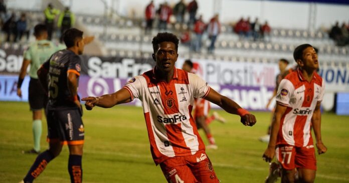 El festejo de la Tukita Ordóñez, para el gol de Técnico Universitario vs Libertad, por la LigaPro (API).