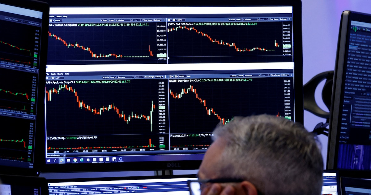 En Wall Street, los tres principales índices abrieron en rojo este lunes. El Nasdaq, con un fuerte peso en el sector tecnológico, caía un 2,8%, mientras que el S&P 500 retrocedía un 1.8% y el Dow Jones Industrial Average registraba una caída del 0.9 %. Estas pérdidas se producen apenas unas semanas después de que el S&P 500 alcanzara un récord histórico el pasado 19 de febrero. Desde entonces, el índice ha caído un 7.4%, en medio de una serie de fluctuaciones que reflejan la ansiedad de los inversores.