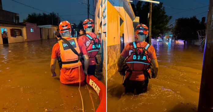 Equipos de rescate asistieron a un niño arrastrado por la corriente en barrio Los Gigantes, quien logró ser puesto a salvo (Crédito: X – Policía de Córdoba)