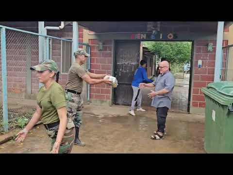 Desde el mega operativo, los ministros de Desarrollo Social Mario Mimessi y de Seguridad y Justicia, Gaspar Solá, explican el traslado de las personas que serían afectadas por la inundación y cómo se trabaja en el campamento base en El Rosedal. Mimes