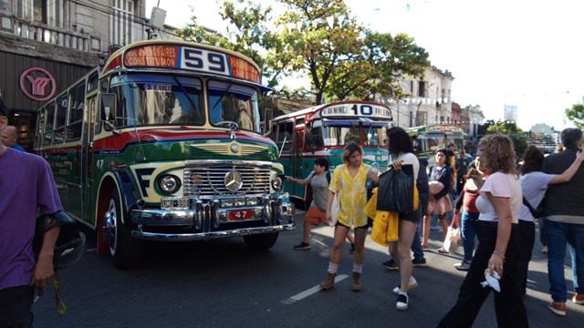 La gente, atraida por el desfile de ómnibus clásicos restaurados, que circularon hasta hace poco por las calles del AMBA, deja allí sus donaciones, que serán trasladadas al sur bonaerense.