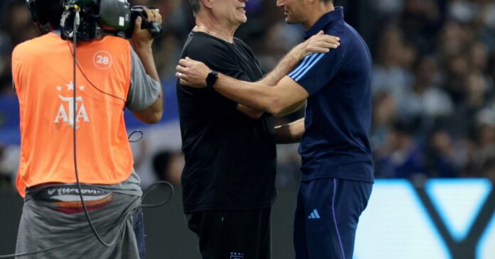 A fines de 2023, ya como seleccionador de Uruguay, visitó a la Argentina de Scaloni por Eliminatorias. Y la Celeste se impuso por 2-0, quitándole el invicto al seleccionado local en este certamen (25 partidos).