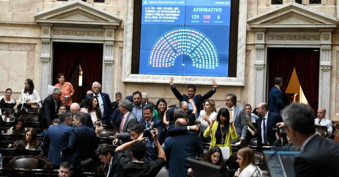 El oficialismo logró ratificar en la Cámara de Diputados el decreto que habilita al gobierno nacional a firmar un nuevo acuerdo con el Fondo Monetario Internacional. Los libertarios llegaron a los 129 votos afirmativos gracias al apoyo del PRO, la UCR, la Coalición Cívica, parte de Encuentro Federal y los diputados que responden directamente a los gobernadores.