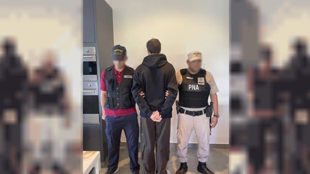 Elías Piccirillo, el marido de Jésica Cirio, fue detenido este jueves en el marco de una causa por fraude y armado de pruebas falsas. En la imagen que se conoció tras su captura, se lo ve de espaldas, esposado y con la cabeza gacha, escoltado por dos agentes de la Prefectura Naval Argentina (PNA).