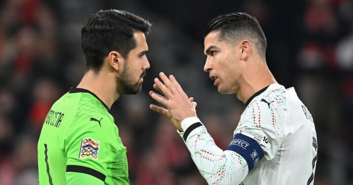 A los 22 minutos, el conjunto danés, a cargo de Brian Riemer, se vio favorecido por la correcta sanción de un penal por una evidente mano en el área de Renato Veiga tras un remate a distancia de Christian Eriksen. En ese momento, Cristiano se acercó a la posición de su arquero, Diogo Costa, para mantener una breve conversación con el jugador de 25 años, quien todavía no había podido atajar ninguna de las dos penas máximas pateadas en su camino dentro del combinado nacional mayor.