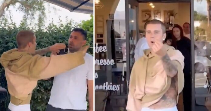 En videos que circularon ampliamente en redes sociales, también se puede observar a Bieber cubriéndose el rostro con las manos, visiblemente molesto por la presencia de los hombres frente a él.