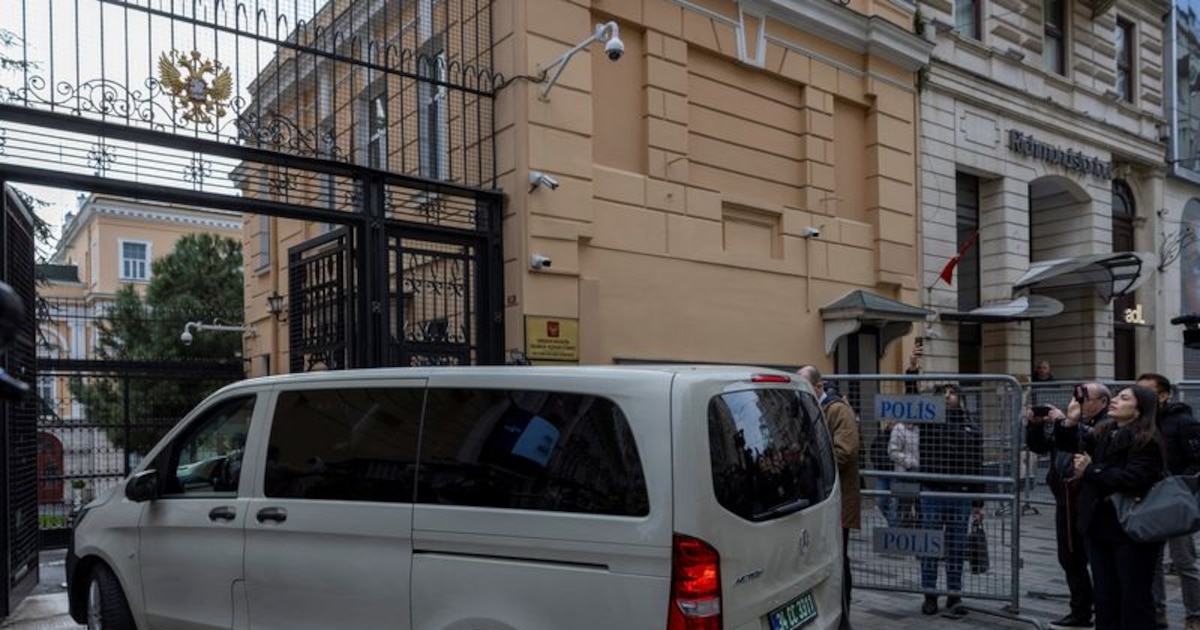 Varias personas pasan por delante del consulado ruso, donde las delegaciones estadounidense y rusa se reunieron este jueves (REUTERS/Umit Bektas)