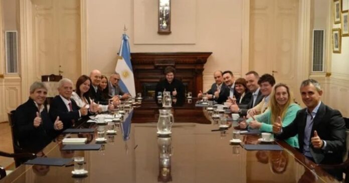 Bajo la coordinación de la secretaria general de la Presidencia, Karina Milei, el mandatario se rodeará del jefe de Gabinete, Guillermo Francos, y los ministros Luis Caputo (Economía), Federico Sturzenegger (Transformación del Estado), Sandra Pettovello (Capital Humano), Patricia Bullrich (Seguridad), Luis Petri (Defensa), Mariano Cúneo Libarona (Justicia), Mario Lugones (Salud) y Gerardo Werthein (Relaciones Exteriores) que fueron citados a las 17.