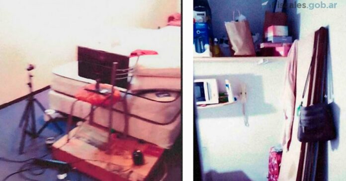 Colchones apilados y una PC con webcam donde una víctima era obligada a exhibirse por webcam