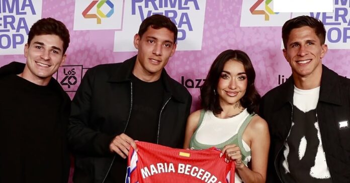 Como extra, pocas horas después, Becerra sorprendió a sus fans utilizando dicha camiseta en un momento de su show. el vínculo entre María Becerra y el Atlético de Madrid no se limitó al plano visual del escenario. En el backstage del Movistar Arena, la cantante fue fotografiada junto a José María Giménez, uno de los capitanes del club español.