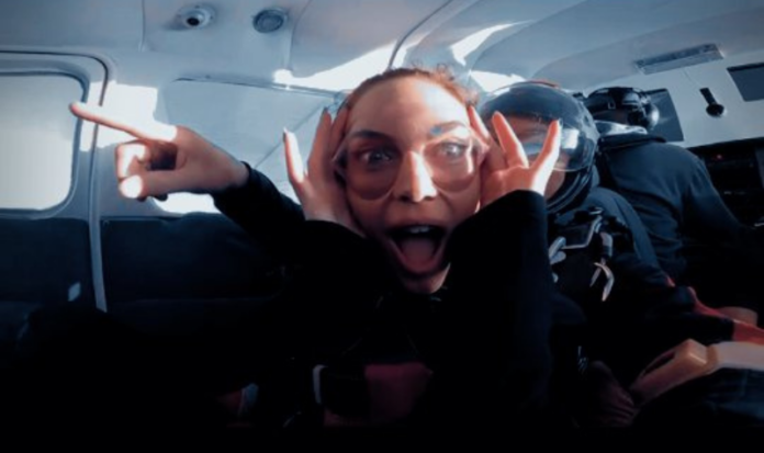 La actriz subió al avión y cuando llegaron a los 3000 metros de altura, la famosa decidió tirarse. La caída duró casi un minuto y alcanzó los 200 kilómetros por hora. En el video Emilia se mostró súper emocionada y con muchísima adrenalina.