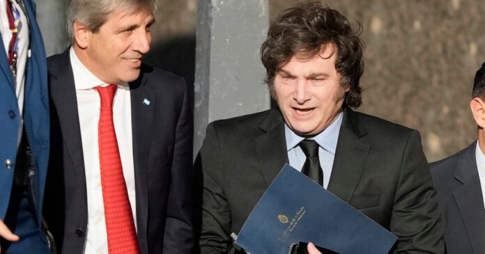 El presidente Javier Milei junto al ministro de Economía, Luis Caputo