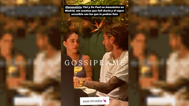 Durante la noche del jueves, la cantante y el futbolista fueron captados disfrutando de una cena en un restaurante que se especializa en comida selvática, mediterránea y asiática: “Tini y De Paul en Amazónico en Madrid. Me cuentas que full charla y él super accesible con los que le pedían foto”.
