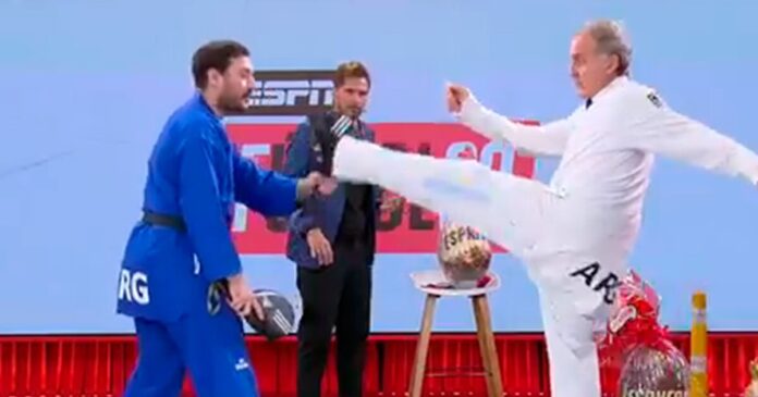 Tras eso, Alves le propuso una más difícil. “No me pegues, eh. No me midás…”, fue el comentario que despertó las risas de los otros panelistas, emulando a la frase que Ricardo Caruso Lombardi le dedicó durante su recordada pelea callejera a Fabián García. Fue en ese momento que a Oscar le aclararon que las piñas no podían ejecutarse en el rostro, sino entre los hombros y la cintura. Y que solamente se podía tener contacto con el pie en la cabeza del adversario. “Me noqueás en un segundo”, exclamó.