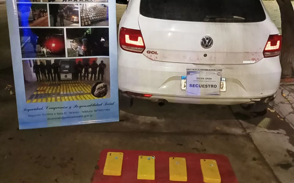 Se incautó el cargamento de cocaína cuyo pesaje equivale a más de 41 mil dosis de droga y el vehículo quedó secuestrado. Intervino la Fiscalía Federal de Orán.