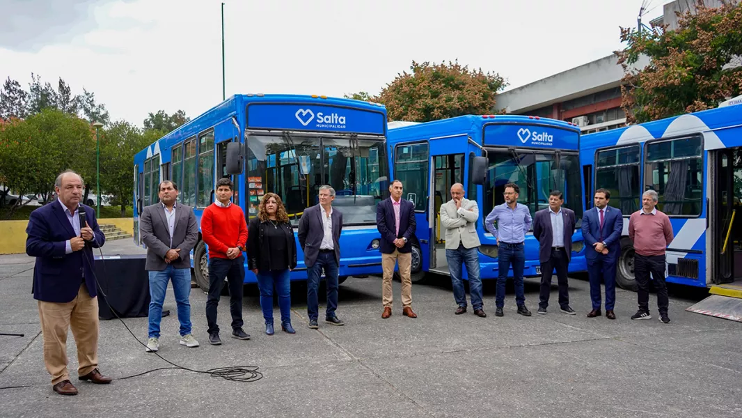 En un acto realizado en el Patio de Banderas del Centro Cívico Grand Bourg, el ministro de Gobierno, Derechos Humanos y Trabajo, Ricardo Villada encabezó la entrega de colectivos, en esta oportunidad, a los municipios de Capital, La Viña, Orán y General Ballivián. Participaron los intendentes: Emiliano Duránd, Elizabeth Sánchez, Baltasar Lara Gros y Samuel Córdoba, respectivamente. También estuvo presente el presidente de SAETA, Claudio Mohr.