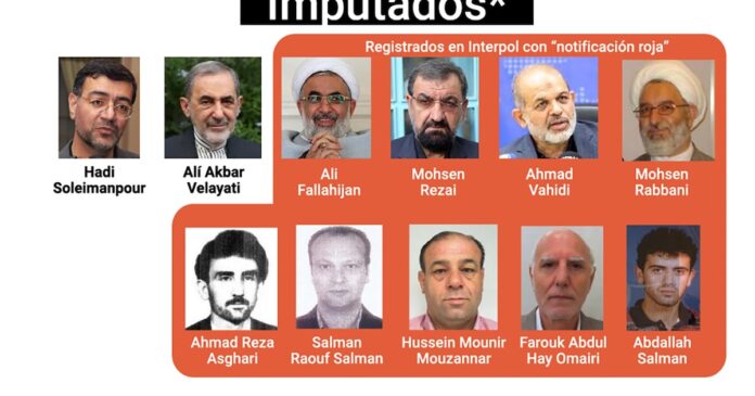 La Fiscalía solicitó que se aplique el juicio en ausencia para Alí Fallahijan, Alí Akbar Velayati, Mohsen Rezai, Ahmad Vahidi, Hadi Soleimanpour, Mohsen Rabbani, Ahmad Reza Asghari, Salman Raouf Salman, Abdallah Salman y Hussein Mounir Mouzannar. Se trata de los 10 acusados con alerta roja de Interpol y pedido de captura internacional desde 2006 pero que nunca fueron detenidos. Irán, el país de la mayoría de los imputados, no extradita a sus ciudadanos y cuando viajan por el mundo no son detenidos por razones geopolíticas o porque las alertas no se activan. Muchos son actualmente funcionarios del gobierno de Irán y otros lo fueron cuando ocurrió el atentado.
